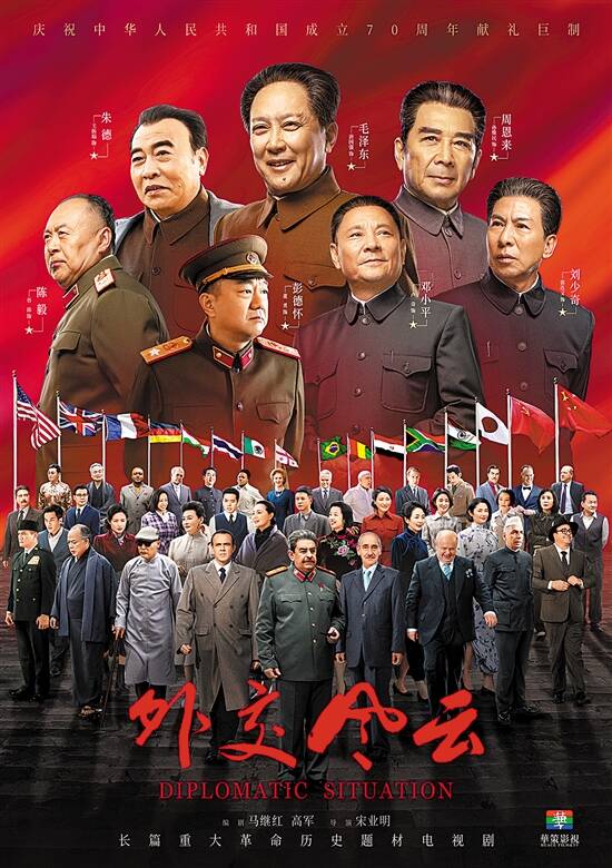 庆祝中华人民共和国成立70周年献礼剧《外交风云》于今晚在广东卫视、北京卫视、优酷、腾讯、爱奇艺同步播出。昨日,剧方在北京举行开播发布会,编剧马继红、导演宋业明携领衔主演唐国强、孙维民等出席,共同揭开了《外交风云》的神秘面纱。