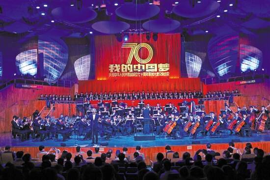 羊城晚报讯 记者黄宙辉,通讯员陈亮、朱明报道:18日晚,广东原创大型交响组歌“我的中国梦”在广州星海音乐厅成功首演。这是一部广东音乐人献给新中国70岁生日的赞歌,由300多位演员同台唱响。本场音乐会由广东省文学艺术界联合会、羊城晚报报业集团、广东省音乐家协会联合主办。