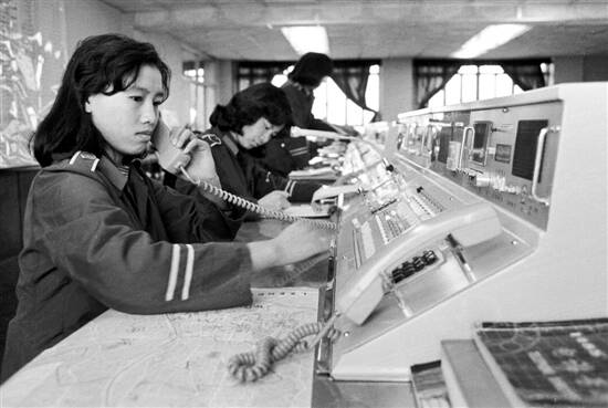 ▶1986年,广州市公安局率先建立全国首个110电话报警服务台(下图,周晓辉摄)。