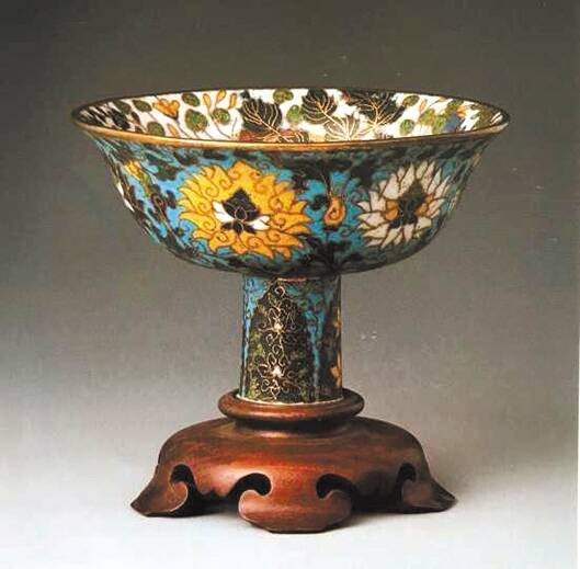 图一 明朝景泰蓝缠枝牡丹曲卮,现藏于中国国家博物馆