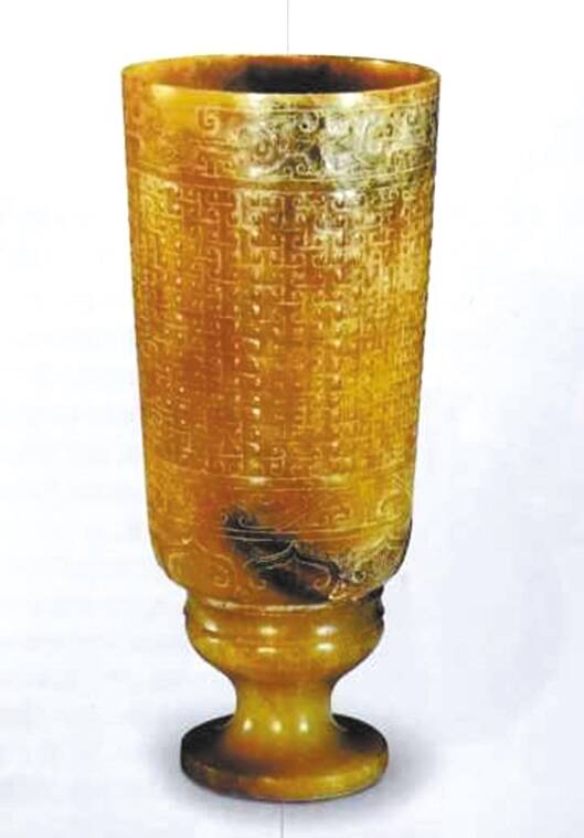 图一之器作何称呼呢?明朝人称之“把杯”,今人称之“高足杯”,皆失于考据。此器当称作“屈卮(zhi)”或“曲卮”,由来已久,承载着中国数千年文化及中庸之道。