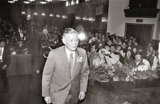 1991年4月4日,全国政协七届四次会议在北京人民大会堂闭幕。新当选政协副主席的叶选平同志走上主席台 新华社发