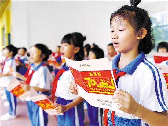 惠州市南山学校的孩子们正在为国庆节举行的诗歌朗诵会进行排练 通讯员 梁勇 摄