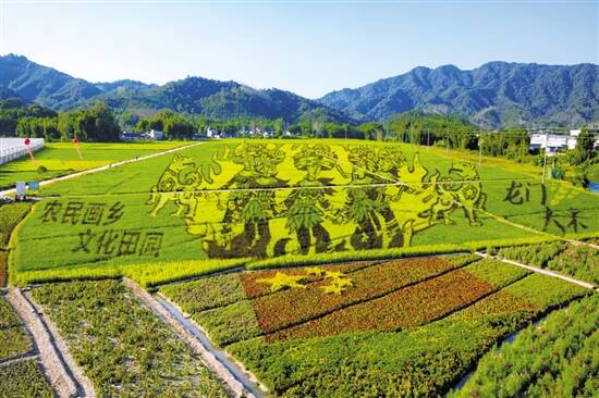 在惠州龙门县庆祝丰收节活动中,“百亩稻田龙门农民画”用面积为56519.09平方米的巨幅打破吉尼斯世界纪录,天然彩色水稻和常规绿叶稻更绘制出五星红旗,庆祝新中国成立70年。