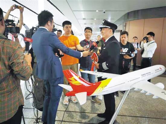 25日下午,大兴机场首航航班之一——首都航空“大兴号”A330客机运载百余名旅客,执行JD5778航班,从北京大兴国际机场起飞,飞往杭州萧山国际机场。巧的是,执飞机长的名字叫李大兴。当天,首都航空全彩绘宽体机“北京大兴号”正式亮相。“大兴号”由首都航空与北京大兴区政府合作喷绘,机身装饰有天安门、天坛、鸟巢、水立方等北京标志性建筑元素,寓意“新国门新大兴”在蔚蓝天际腾飞启航。