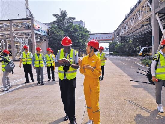羊城晚报讯 记者汪海晏、实习生李紫英报道:日前,由国新办主办、“一带一路”新闻合作联盟秘书处与中国传媒大学承办的“一带一路”新闻合作联盟短期访学班部分成员来到广州,他们先后参观了广州华润热电有限公司(简称“华润热电厂”)、太平洋咖啡有限公司以及太古汇Ole超市等,感受广州在创新驱动和高质量发展中取得的新成绩。在参观完位于南沙的华润热电厂后,访学班成员纷纷为这座现代化的绿色电厂点赞。《赞比亚时报》首席财经记者迈姆博瓦·穆利凯莱拉竖起了大拇指,她说赞比亚虽然也有类似的水电厂,但规模很小,其副主编杰克逊·姆韦瓦更是希望两国之间有更多的合作,把这里的清洁能源技术引进赞比亚。
