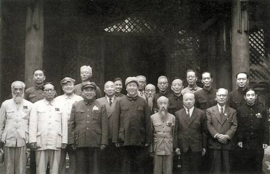 1949年7月,新政协筹备会常务委员在中南海合影。左起:谭平山、周恩来、章伯钧、黄炎培、林伯渠、朱德、马寅初、蔡畅、毛泽东、张奚若、陈叔通、沈钧儒、马叙伦、郭沫若、李济深、李立三、蔡廷锴、陈嘉庚、乌兰夫、沈雁冰。(注:张澜未参加合影) 本版图片来源:大道同行——从“五一口号”到协商建国重要史事回顾展(中国政协网)