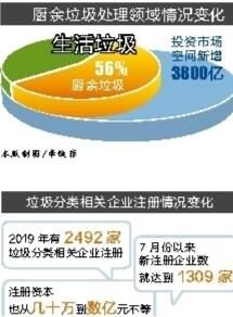 从企业数量上看,垃圾处理相关企业明显增加。羊城晚报记者在天眼查官网上搜索关键词“垃圾分类”显示,今年已有2492家垃圾分类相关企业注册,而7月份以来新注册企业数就达到1309家,注册资本从几十万到数亿元不等。