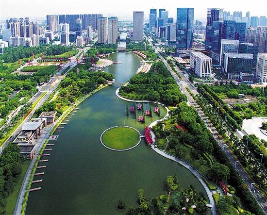 千灯湖畔的广东金融高新技术服务区,是广东唯一省级金融后台服务基地,被赋予金融后援基地和产业金融中心两大定位,其愿景是引领华南、影响全国、辐射亚太。