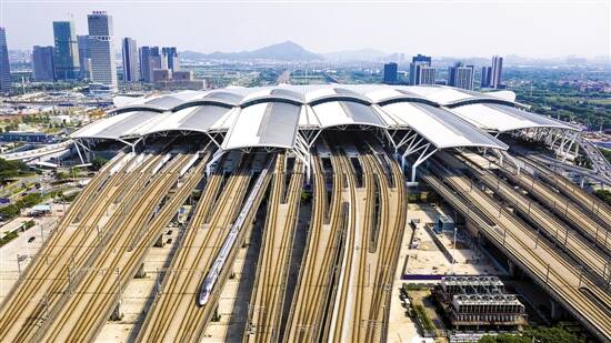 列车从广州南站驶出 羊城晚报记者 周巍 摄
