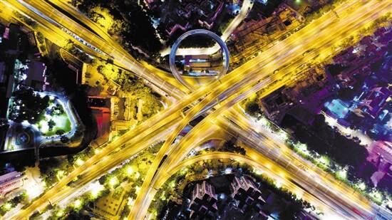 入夜,中山一路立交灯火辉煌,犹如一幅画 黄巍俊 梁喻 摄