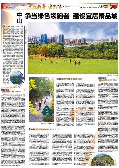去年,中山市空气质量改善幅度全省第一。近日,生态环境部晒出全国生态环境成绩单,其中中山市空气质量排名全国前十、水环境质量改善幅度全国第四。