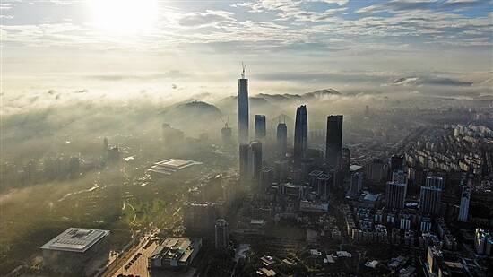 朝阳下开始展现活力的东莞市区