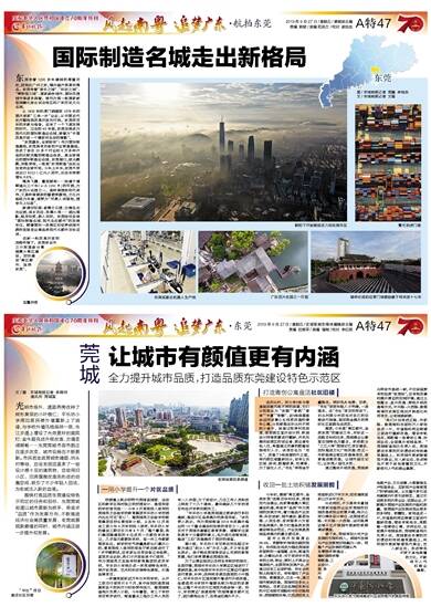 今年初,围绕“湾区都市、品质东莞”战略目标和任务,莞城党代会提出,抢抓粤港澳大湾区建设机遇,将追求“品质”作为莞城的发展方向,着力推进产业发展、科技创新、城市建设、基层治理、人民生活、政府服务六方面的品质提升,努力打造品质东莞建设特色示范区。产业发展是莞城品质提升的最主要任务。