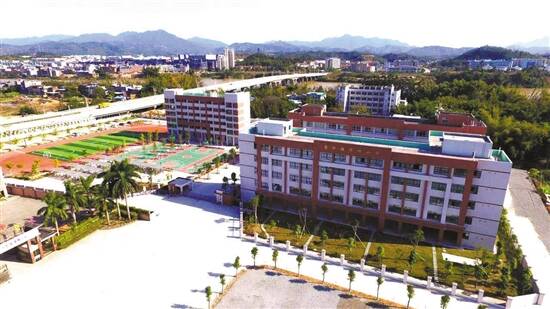 走进位于梅县西片区的梅县外国语学校,占地400亩的校园,集幼儿园、小学、初中、高中各部于一体,足球场、篮球场、游泳馆、教学楼、师生宿舍楼等一应俱全,如此完善的设施和规模,在珠三角发达地区也可数一数二。