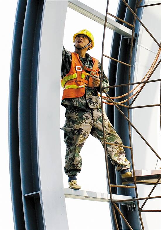 深茂铁路项目,工人正在声屏障上施工 广铁供图