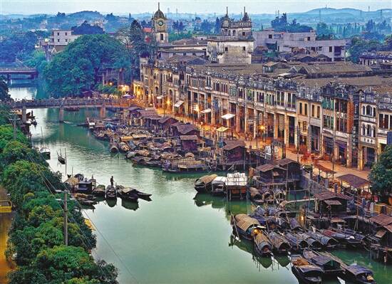 滚滚潭江流经江门开平市百合、蚬冈附近,突向东北U形转弯,江水奔流数公里,赤坎镇便在江边相迎。开埠于清朝顺治年间的赤坎镇,至今已有360多年的历史,长期以来一直是海外华侨华人、港澳台同胞与家乡开平沟通联系的重要纽带,其华侨文化也就此一点一滴地沉淀而成。这里是国家首批特色小镇,早年移民欧美的华侨把西方的建筑技术带回赤坎,融入岭南建筑元素,建成巴黎大旅店等一座座融合古典民族风格、欧陆风格、南洋风格的建筑,680多座骑楼建筑让这里成为华侨建筑文化研究与观赏的宝库。这里是除碉楼外,游客到江门开平市必看的另一景点。