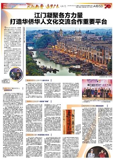 今年11月,首届粤港澳大湾区华侨华人文化交流合作大会将在江门举办;明年,第七届世界江门青年大会将在巴拿马举办......从江门五邑出发,全球华侨华人合作交流的印记遍布世界各地,成为新中国成立七十年来,江门最重要的一个标签。