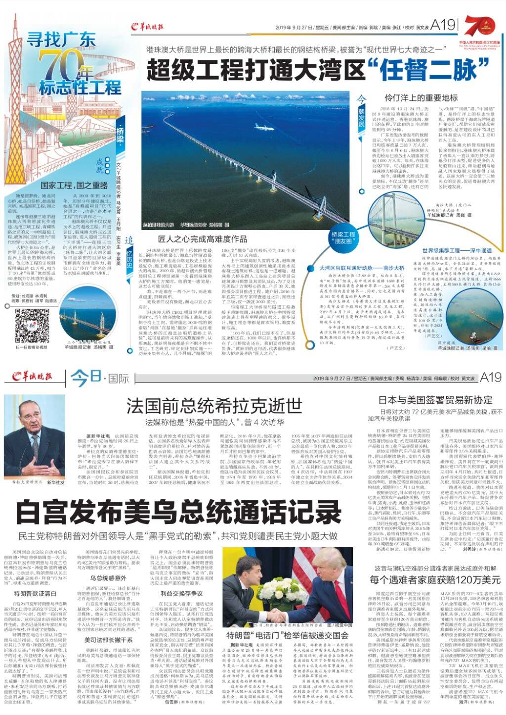 第A19版:寻找广东70年标志性工程;今日·国际