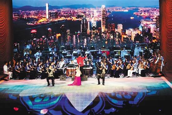 《弯弯的月亮》《东方之珠》《七子之歌》等三首曲子由粤港澳三地的艺术家共同呈现,成为音乐会的一大亮点 羊城晚报记者 邓勃 摄