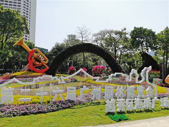 11个行政区的主题园圃结合各区特色文化品牌,如荔湾区“粤韵留声”、番禺区“飘色”、花都区“南国红棉”、从化区“跨越”、黄埔区“山海经”等作品,共同绘就广州“老城市,新活力”的魅力形象,展现了“美丽花城、幸福广州”的园博会主旨。
