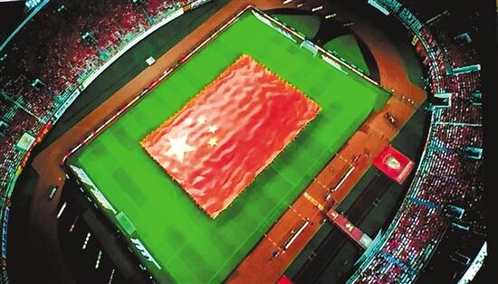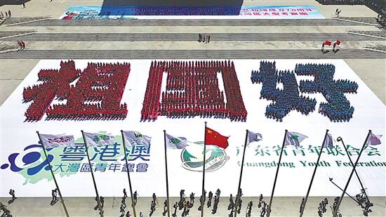 广州白云国际会议中心广场,来自粤港澳的3000名青年手挥国旗,拼出“祖国好”字样 羊城晚报记者 梁喻 摄