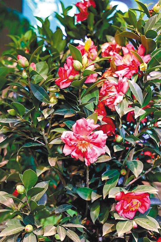 盛花期绽放的四季茶花
