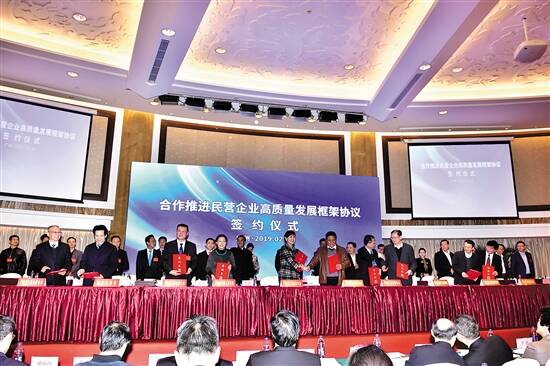 ——推动形成民营企业发展壮大的合力。与省有关单位加强合作,签署框架协议和合作备忘录,协同为民营经济高质量发展提供产业、科技、金融、人才、税收、走出去等方面服务。