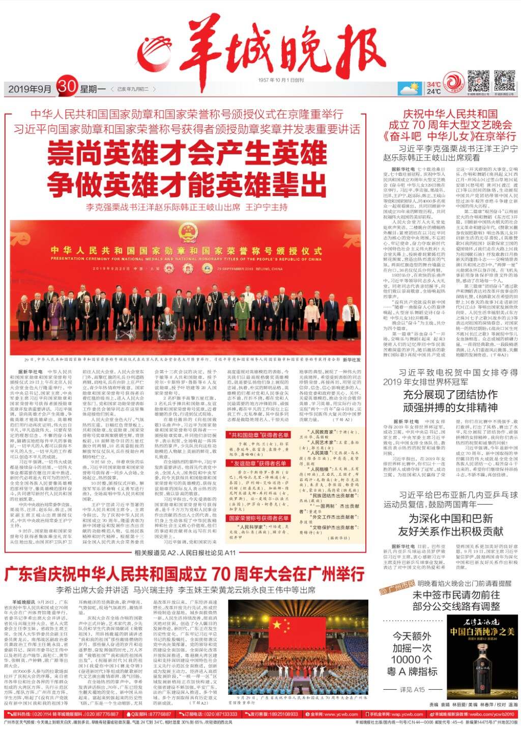 广东省庆祝中华人民共和国成立70周年大会在广州举行