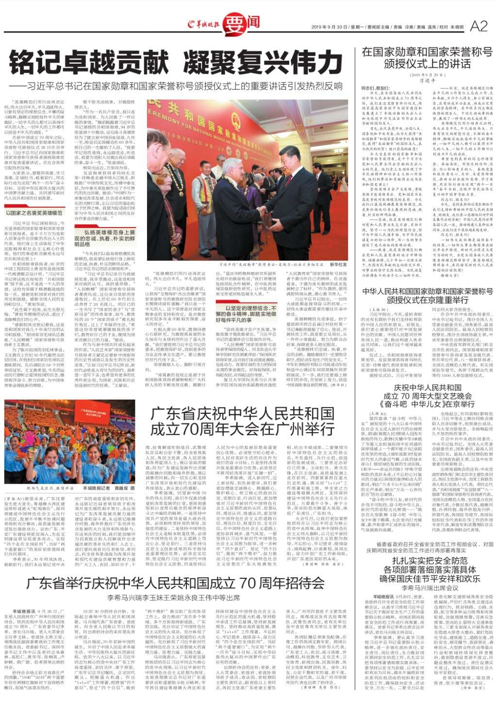 广东省庆祝中华人民共和国 成立70周年大会在广州举行