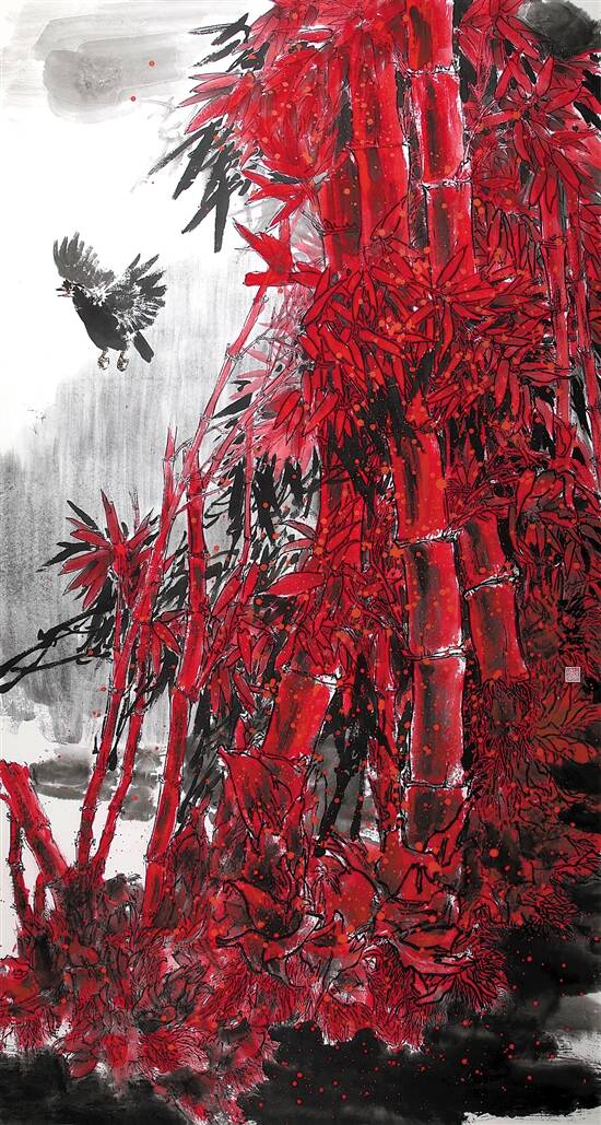 硃竹生辉(国画)