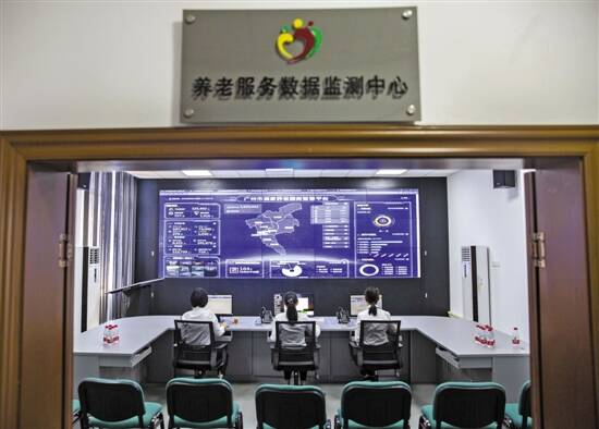走进广州市居家养老服务指导中心内的养老服务数据监测中心,巨大的显示屏上,全市助餐配餐申请人数、长者饭堂数量、居家服务资助对象等数据一目了然。
