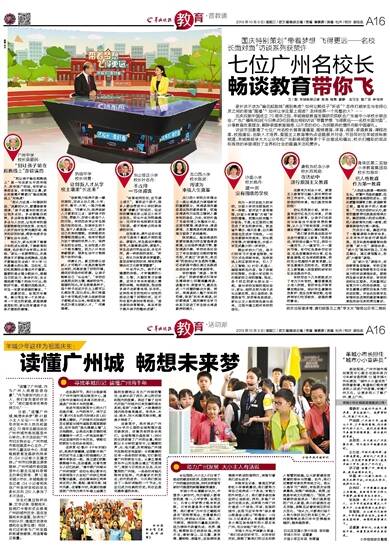 访谈节目邀请了七位广州名校长做客演播室,围绕德育、体育、阅读、家庭教育、课程改革、校园建设、创新人才培养、爱国主义教育等热点话题展开对话,节目同时在羊城派科教频道、羊城晚报学大大公众号和广东新闻频道等多个平台推送和播出,校长们精彩的观点和有效的举措得到了业界和社会的普遍关注和赞许。