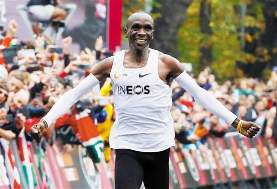 羊城晚报讯 记者周方平报道:昨天在奥地利首都维也纳的“Ineos 1:59”的挑战中,马拉松世界纪录保持者、肯尼亚著名长跑运动员埃鲁德·基普乔格以1小时59分40秒完赛,成为历史上第一位马拉松跑进两小时大关的选手。不过,国际田联认为主办者为其创造了有利条件,所以成绩不会被认可。