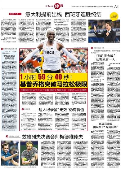 基普乔格此前也曾挑战“全马两小时”——2017年5月,他在意大利蒙扎F1赛道进行的“Breaking2”马拉松赛上以2小时25秒的成绩跑完全程。