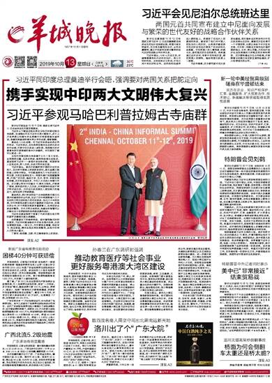 莫迪在入口处迎接,对习近平来到金奈表示热烈欢迎。习近平表示,去年我同总理先生在武汉成功举行会晤,引领中印关系进入新阶段。我很高兴应你邀请来到印度南端的泰米尔纳德邦,对印度的了解可以更进一步。