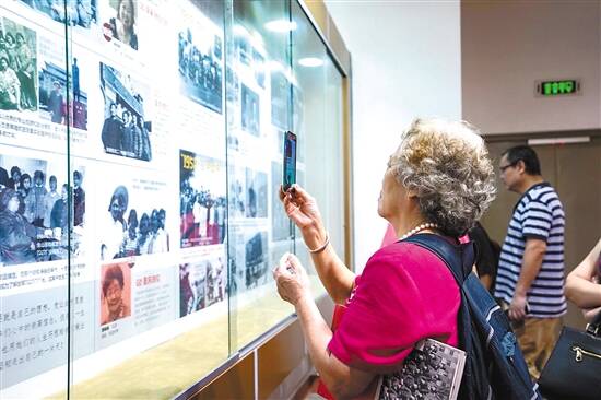 在主题展览开幕式上,15位第一代航测女兵代表也来到现场,并再次唱响当年激励着她们携笔从戎、不负芳华的《共青团员之歌》。她们中,有三位专程从北京赶来,还有两位远渡重洋而来,只为这一刻的相聚。女兵陈申申激动地说:“展览记录下了我们的青春岁月,给我们留下了美好的回忆,非常感谢参与展览的所有人。”