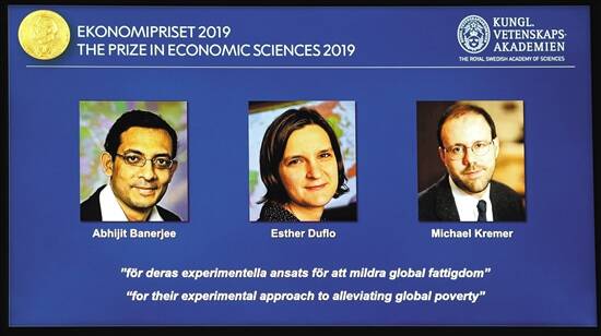 瑞典皇家科学院14日宣布,将2019年诺贝尔经济学奖授予阿比吉特·班纳吉、埃丝特·迪弗洛和迈克尔·克雷默三名经济学家,以表彰他们在减轻全球贫困研究领域作出的突出贡献。