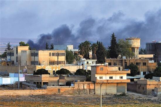 ▲ 13日受炮火攻击的叙利亚北部边境城镇泰勒艾卜耶德