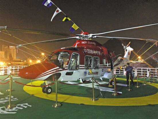 中国极地研究中心副主任孙波介绍,“雪龙2”号配备了“雪鹰301”(AW169型)直升机。到达南极后,一旦破冰船遇到特别密集的浮冰,可出动直升机侦查探冰。