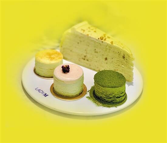 今年秋天,随着华南中央工厂的落成,Lady M在太古汇开设新店,带着精致的甜蜜与广州的顾客见面。10月份推出的中国限定款蛋糕——桂花千层蛋糕,就于秋日之中,带来一缕桂香。你不仅可以看见金色桂花点缀于晶透啫喱上,桂花奶油也在相互层叠的纤薄饼皮中出现,但香气更倾向于轻柔花香,而非馥郁浓厚,以一种清淡的姿态,与全白透明的简约店铺环境相映衬。