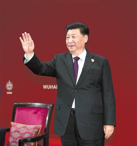 18日,中共中央总书记、国家主席、中央军委主席习近平在武汉出席第七届世界军人运动会开幕式并宣布运动会开幕 新华社发