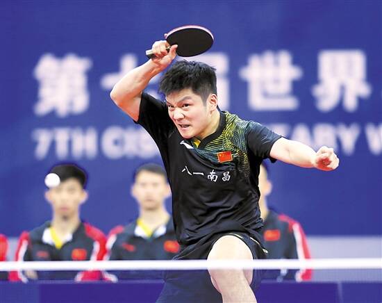 羊城晚报讯 记者魏超然报道:昨晚在第七届世界军人运动会男子乒乓球团体决赛中,名将樊振东领衔的中国队以3比1战胜朝鲜队,夺得冠军,这是军运会历史上决出的首枚乒乓球项目金牌。