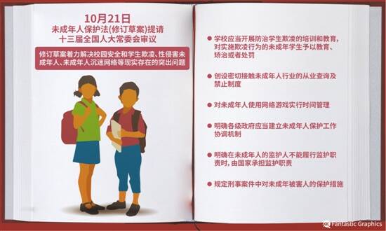 全国人大社会建设委员会主任委员何毅亭在作关于修订草案的说明时介绍,修订草案增设“网络保护”专章,对网络保护的理念、网络环境管理、网络企业责任、网络信息管理、个人网络信息保护、网络沉迷防治、网络欺凌及侵害的预防和应对等作出全面规范,力图实现对未成年人的线上线下全方位保护。