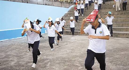 廉江市第一中学举行的地震逃生演练
