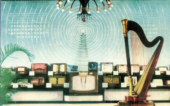 乐器·无线电·家具展厅,陈列各种乐器、收音机、电视机、唱机和家具等。
