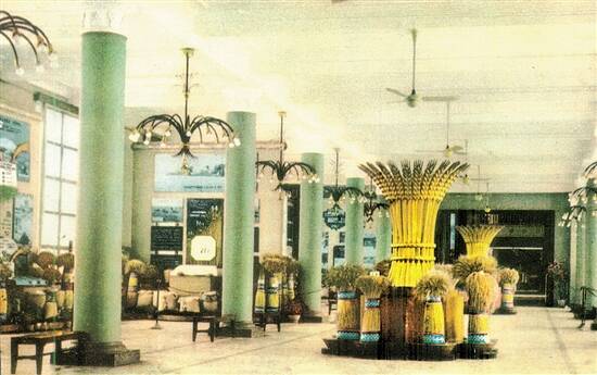 农业概况和谷物展厅,介绍苏联农业全面发展情况,苏联集体农庄、国营农场和农机站以及苏联垦荒的进展,还陈列各种谷物、豆类和种子等。