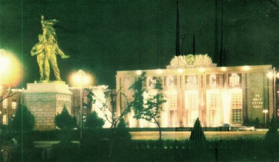 1955年10月5日,“苏联经济及文化建设成就展览会”开幕,由时任广州市市长朱光主持了开幕式并剪彩,9000多名来宾穿着节日的盛装参加了开幕式。