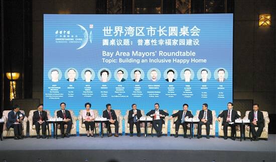 世界湾区市长圆桌会上,与会者分享所在城市关于“普惠性幸福家园建设”的具体实施方案