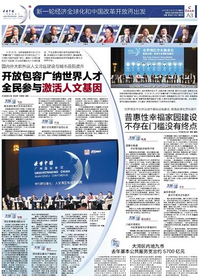 无论是促进经济增长、追求更高科技水平,还是改善人居环境、提升文化品质,都是在为全球居民提供更加幸福的家园。10月26日,2019“读懂中国”广州国际会议平行研讨会之“世界湾区市长圆桌会”举行。来自美国旧金山湾区密尔布瑞市、希腊雅典市以及广州、深圳、珠海等地的市长们共聚一堂,就“普惠性幸福家园建设”议题,分享所在城市的具体实施方案。会议期间,城市的基础设施建设、文化建设、教育改革等成了大家热议的关键词。羊城晚报记者 谭铮 董柳